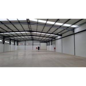 Neste armazém foi colocado o piso industrial no interior e no exterior de acordo com as normas legais.
