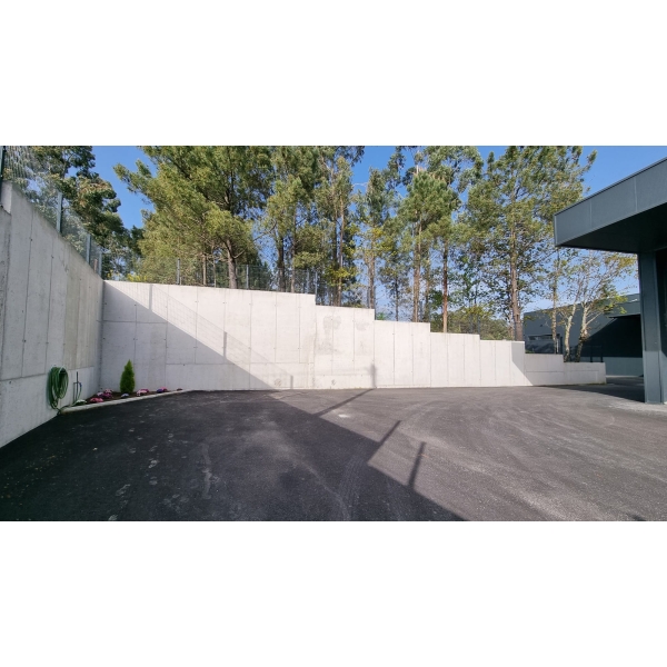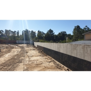 Construção de muro em betão de alta qualidade, desde separação de terrenos e suporte de terras para um armazém industrial em Paços de Ferreira.